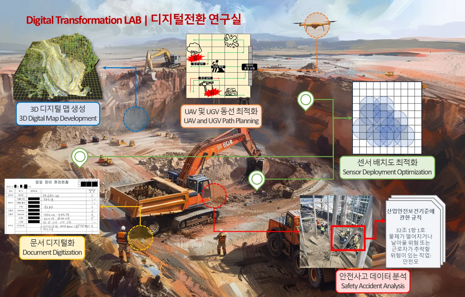 Our ultimite GOAL is to digitalize large, complexed, and dynamic industrial jobsites (e.g., construction, mining, manufacturing, disaster) using artificial intelligence and machine learning, and facilitate digital transformation.